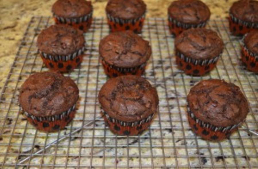 These Chocolate Muffins are more like a cupcake than a muffin. Perfect to enjoy for breakfast or as a snack later in the day, and they have a secret ingredient: healthy zucchini squash (aka courgette). “Why”, you ask? Well, adding the hidden grated zucchini in a cloak of chocolate batter is a great way to incorporate more nutrition into these muffins!