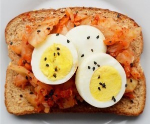 20. Kimchi + Sliced Hard-Boiled Egg + Black Sesame Seeds