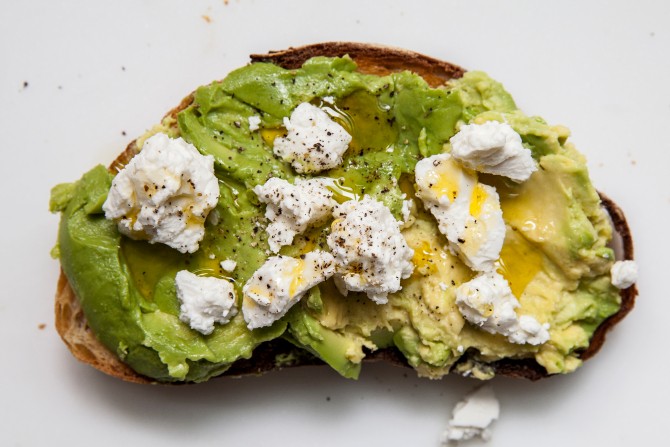 The classic avocado toast comes from New York’s Café Gitane, and features avocado, olive oil, lemon juice, salt, and pepper flakes. Toss together sliced avocado with olive oil and lemon juice, smash it on your toast, and add flakes of salt and chili. Simple, healthy, delicious, photogenic.