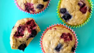 If you have a couple of minutes to warm up the oven, then I’d recommend making some yummy Very Merry Berry Muffins to go with your smoothies.