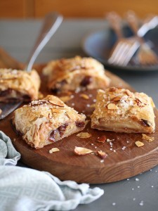 Follow this popular recipe to make a quick-and-easy Apple and Cherry Strudel for breakfast or dessert. The short-cut that makes it all quick-and-easy is using ready-made sheets of phillo (or “filo”) dough from the freezer section of your local supermarket! Phyllo is a thin, unleavened dough typically used for making pastries. It’s light, flaky and the perfect envelope to deliver golden layers of a delicious strudel. Add some boozed-up cherries to tart it up a bit if you want. …