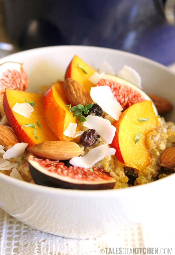 Try cooking quinoa in milk (cow, soy, or almond) and adding some sweet spices and fruit to make a great hot breakfast cereal. This porridge recipe is super-healthy (high in protein and essential amino acids) and easy to make: just put all the ingredients into a pot and bring to a boil. Then simmer, stir, top with your favorite add-ons, and enjoy! …