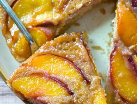 Try this healthy Breakfast Coffee Cake featuring an incredible Caramel Peach topping. Sarah is sharing this recipe to show you how to “party with peaches”! You could also call this a deliciously warm Caramel Peach Upside-Down Cake cleverly disguised as coffee cake …